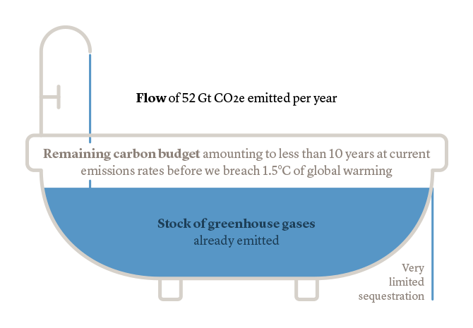 “The climate is like a bathtub that’s slowly filling up with water. Even if we slow the flow of water to a trickle, the tub will eventually overflow.”